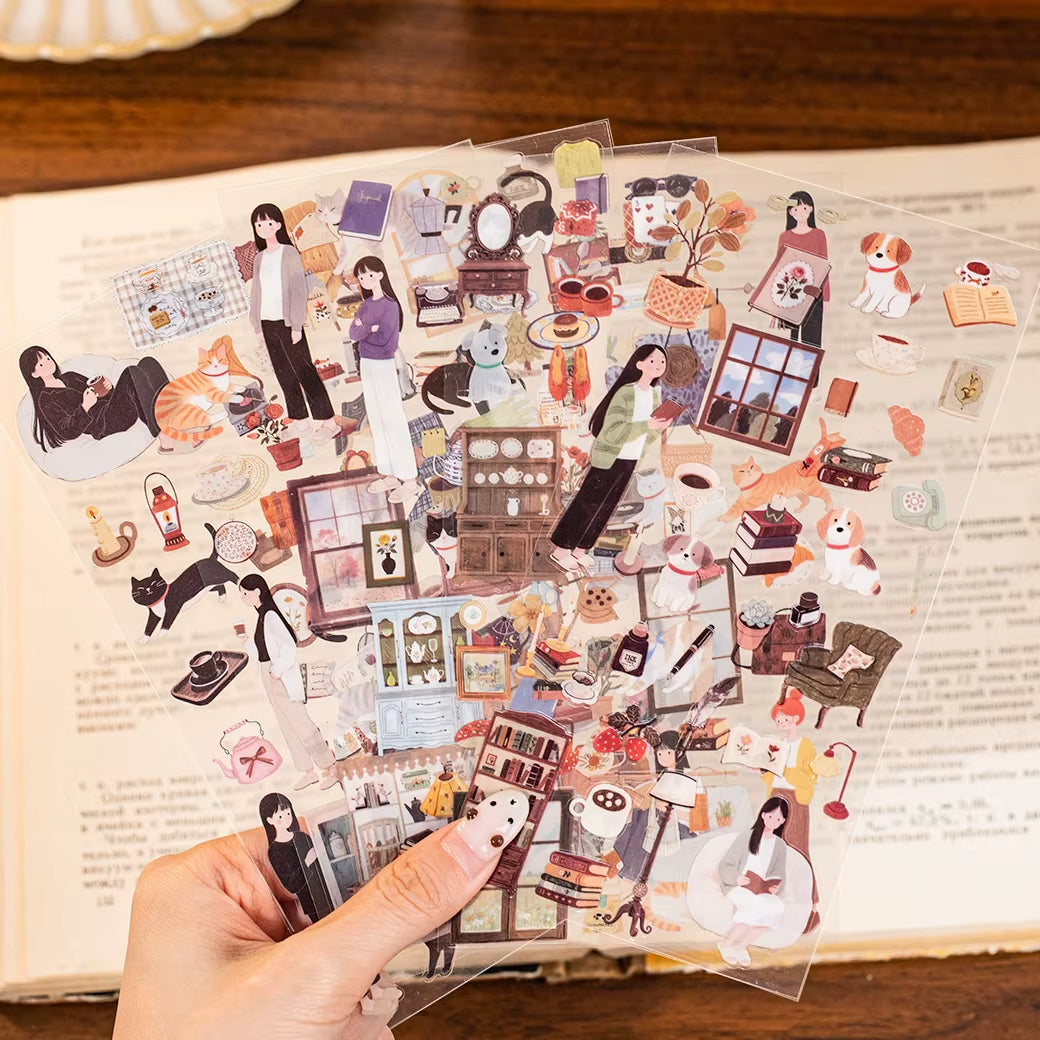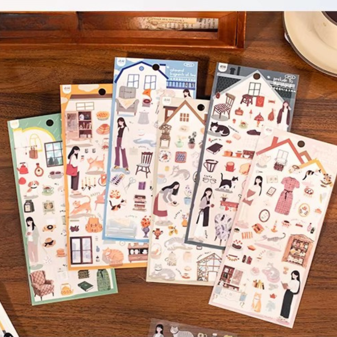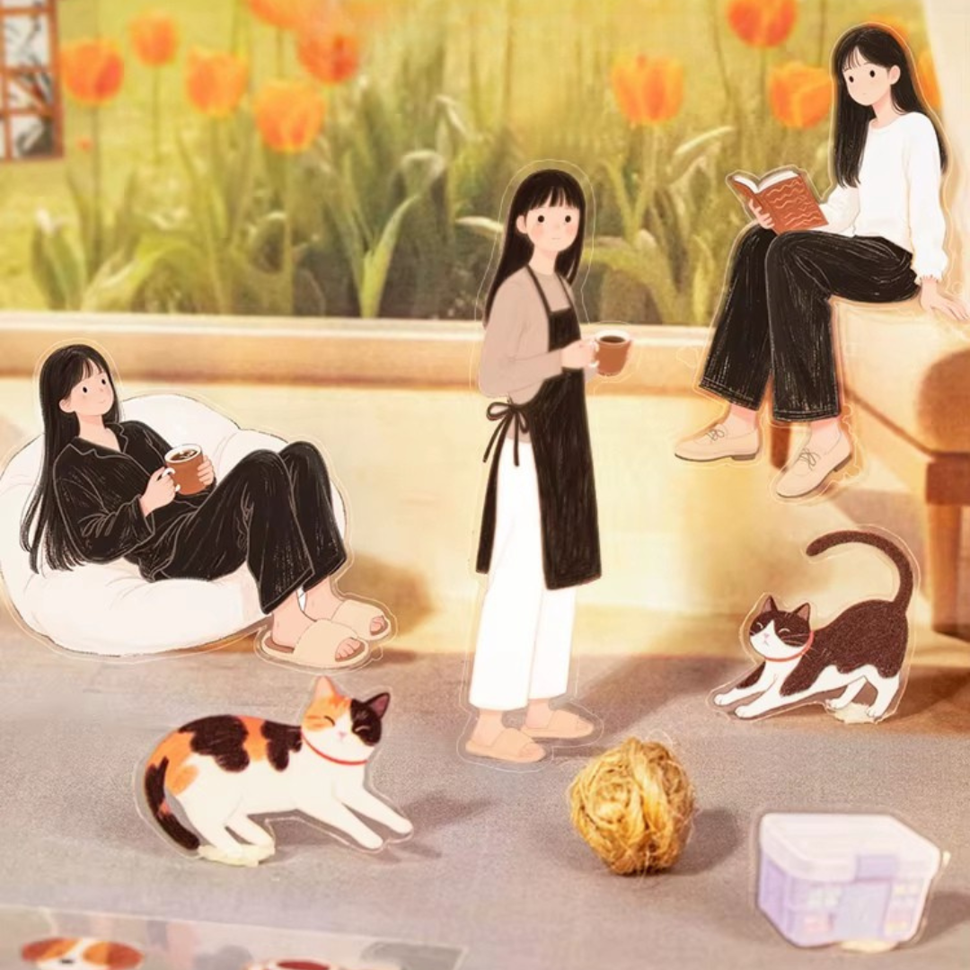Si amas los gatos y la vida tranquila en casa, estos stickers son para ti 🛋️🐾 Chicas, michis y muchas expresiones adorables para usar todos los días.