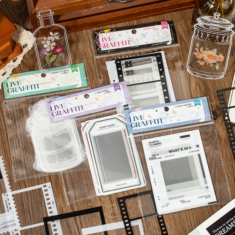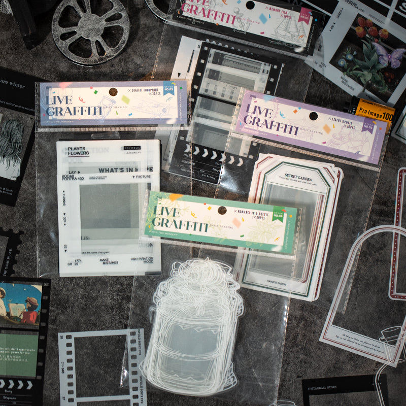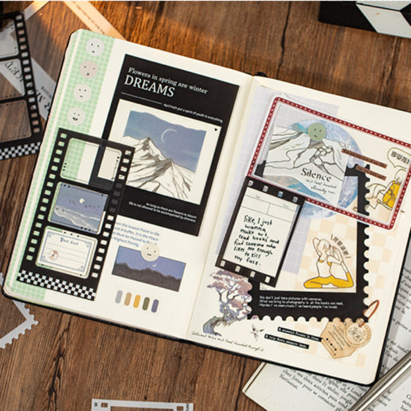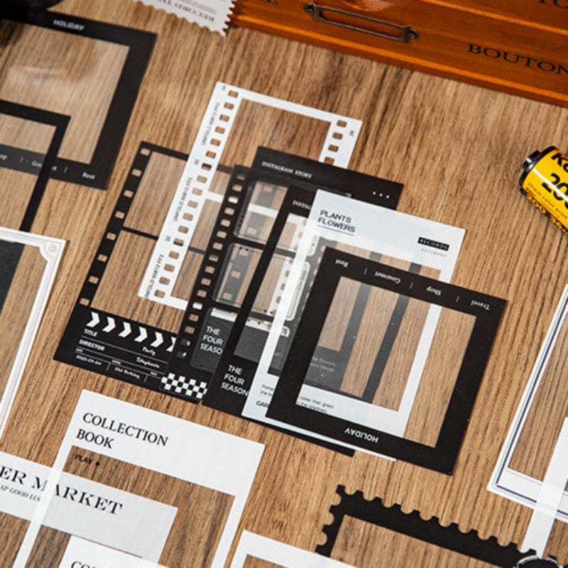 🎬 Stickers variados inspirados en películas, tags y frases ✨. Diseños de estilos diferentes 🎞️ con un toque creativo y divertido 💫, perfectos para journaling, decorar cuadernos y personalizar tus proyectos con estilo único 💌