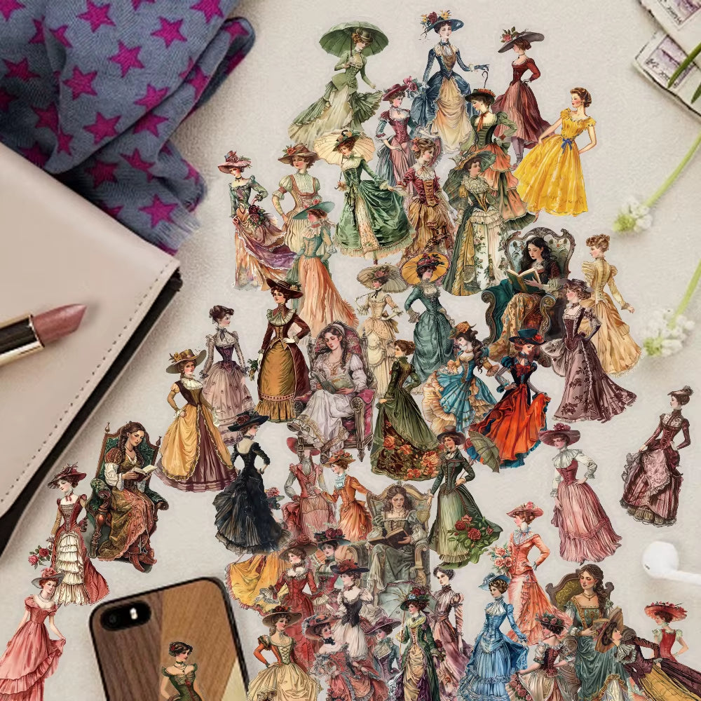 👒 Stickers de señoras vintage ✨ con atuendos elegantes y llenos de encanto 💐. Diseños clásicos inspirados en la moda antigua 🌸, perfectos para decorar cuadernos, journaling y proyectos creativos con un toque nostálgico y sofisticado 💌.